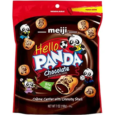 Hello Panda is a fun, bite-size treat with a chocolate crème center and a crunchy shell.